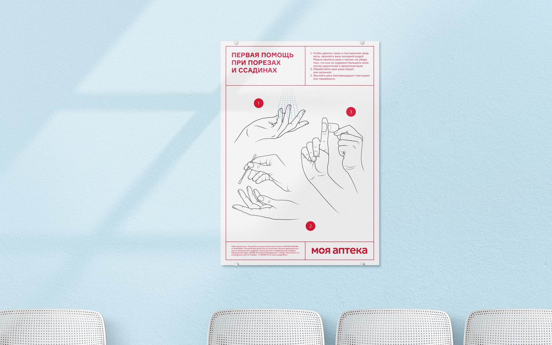 我们在药房的广告宣传中增加了社交定位。海报解释了如何处理家庭常见伤害中的急救,小册子描述了卫生规定或如何预防各种疾病。因此,My Pharmacy都通过提供有用的信息来照顾客户,同时又以不引人注目的方式提供商品。该链利用交叉促销,将其广告放置在分支机构所在的诊所的走廊中,并与医疗机构中常见的其他类型的信息海报相邻。这种广告可以使药房通过各种层次和沟通渠道吸引消费者。
