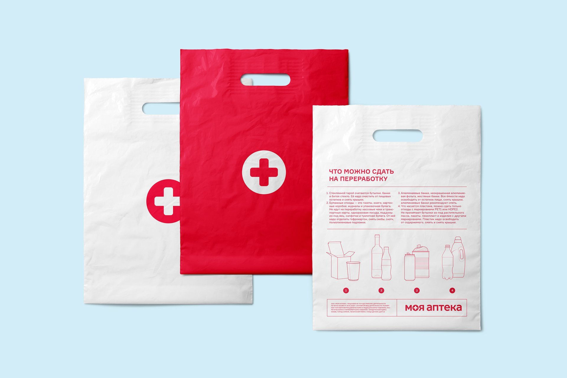 离家很近的低价-我的药房随时随地都可以使用。它具有您需要的一切。就像您在家中的急救箱一样。这个想法是品牌视觉隐喻的基础。红叉表示此图像。它是影响折扣店所需字符的符号-简单明了。这个概念使我们能够保留调色板,以便忠实客户能够识别“我的药房”。