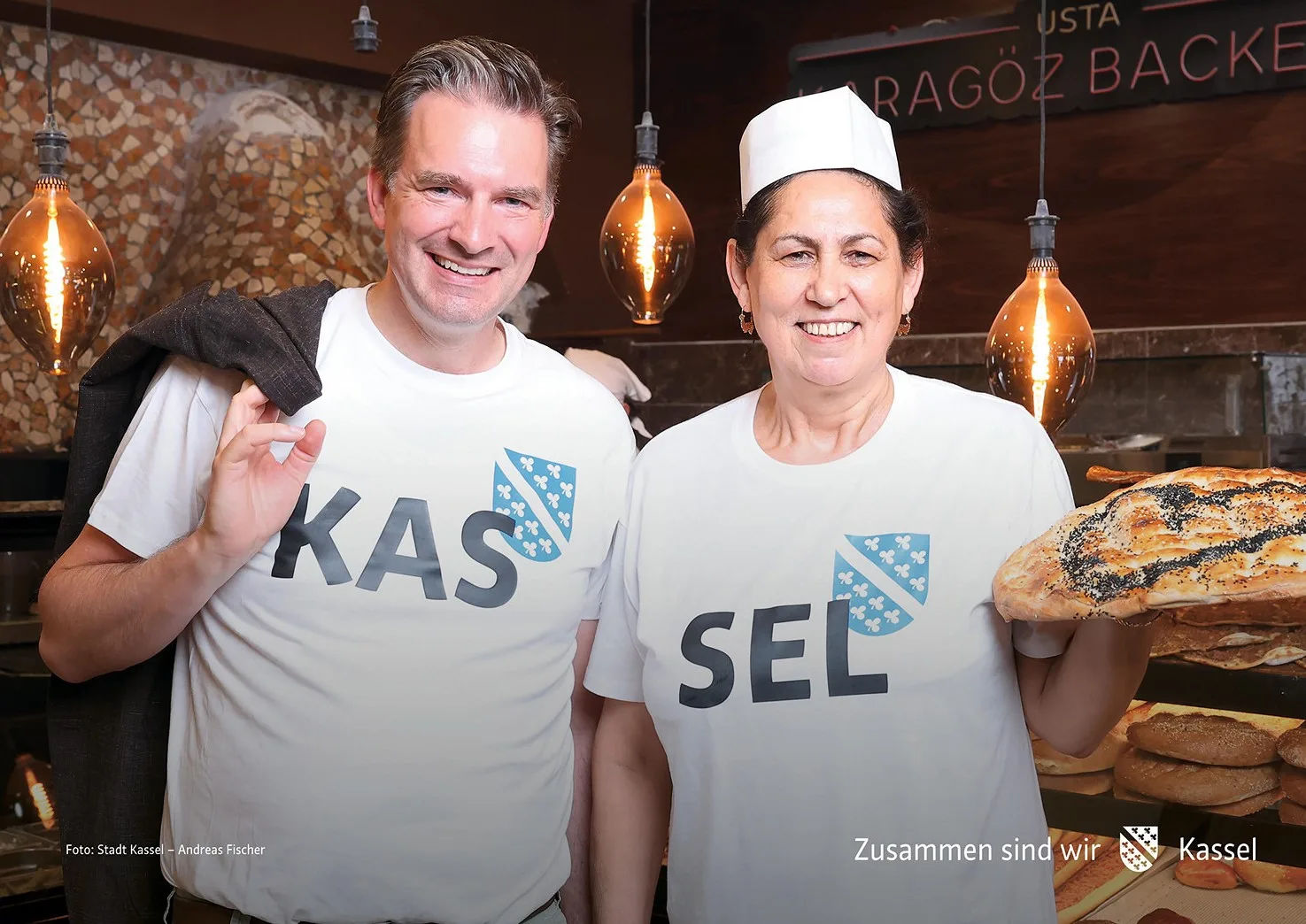 新的城市标识是一个文字与图像相结合的标志,由混合拼写的名称“Kassel”和位于侧面的城市徽章组成。城市名称采用无衬线企业字体,由彼得·布拉斯基结合之前的企业字体设计。蓝色取代红色成为核心颜色,在城市简介图片和网站上都可以看到。
