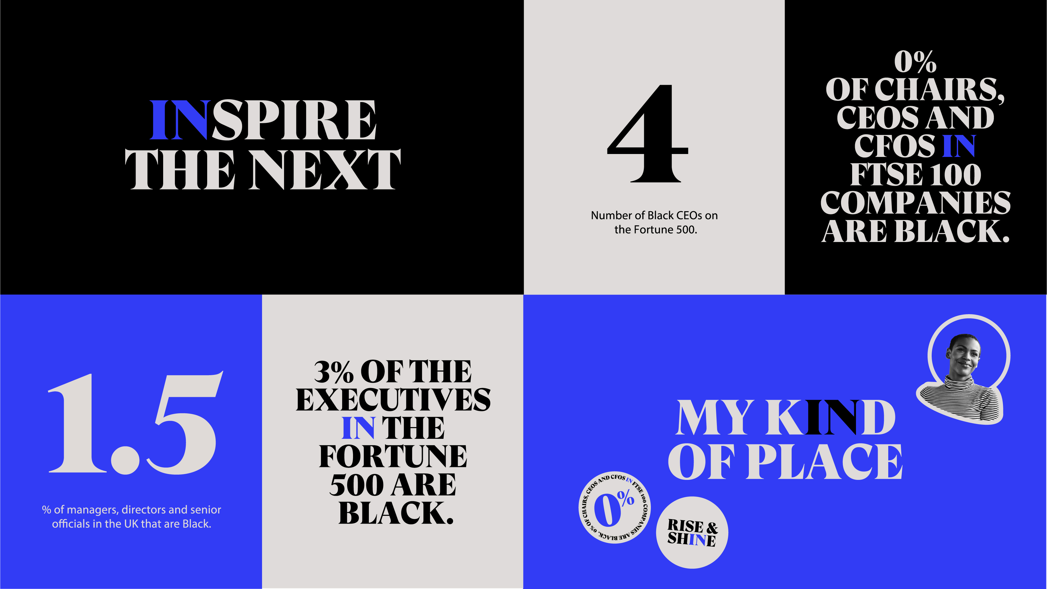 在为伦敦商学院(London Business School)举办的“女性商务会议”视觉识别(Equall)会议上工作过之后,“黑衣人”(Black In Business)创始人Tabria Lenard和科尔·阿格贝德(Cole Agbede)接洽了“风暴品牌”(StormBrands),以创建一个全球品牌形象设计,让这一在富时100指数成份股公司中,被任命为史蒂夫的CEO比黑人CEO还要多,8家公司占富时100指数成份股公司董事的25%,黑人在商业中所代表的不仅仅是一个学生俱乐部和一所商学院,它需要的是一股推动积极变革的力量,以及一份明确的意向声明,以激励更美好的未来。