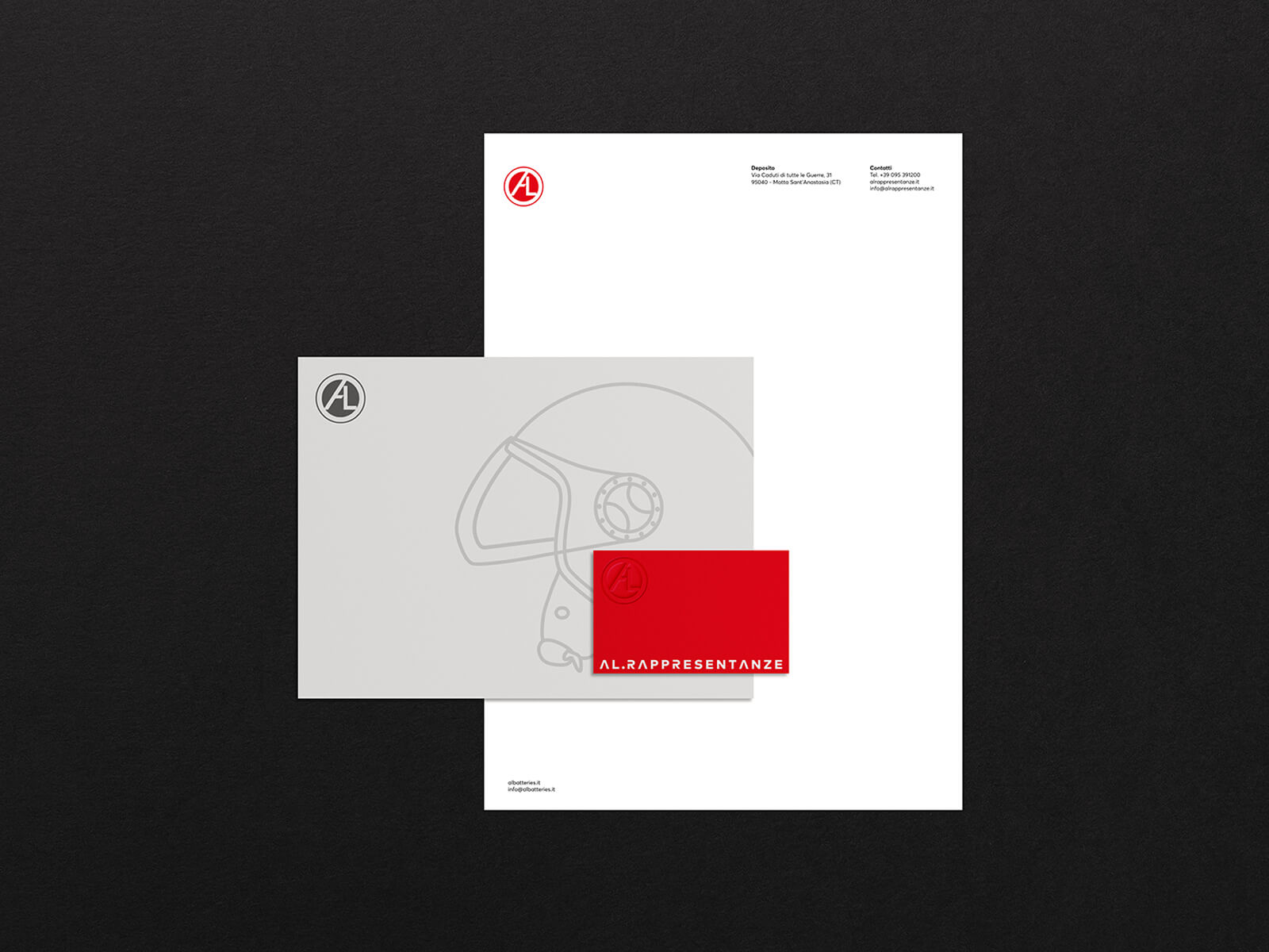 客户要求我们进行品牌再造,使旧标志设计现代化,这个品牌可以超越意大利的国界,并能与竞争对手竞争。旧的logo设计主要由AL字母和“rapPresante”标志组成,充满了3D和装饰元素,小的时候几乎难以辨认,考虑到没有正面和负面版本,它在产品和包装中的位置也不容易。我们的目标是简化标志,设计一个可以工作的符号,即使它没有伴随标志型。我们从一些著名的汽车和摩托车品牌的标识中获得了灵感,但特别是他们中的许多人在最近几年进行的最小程度的重新设计。我们把‘A’和‘L’结合在一起,结果是一个现代的字母,把它封装在一个圆形的会徽里。我们想要一种能让人联想起汽车工业的基本颜色,这会激发出整个视觉形象设计特征,所以我们选择了一种经典的红色和一种金属版本,可以在特定的领域使用。