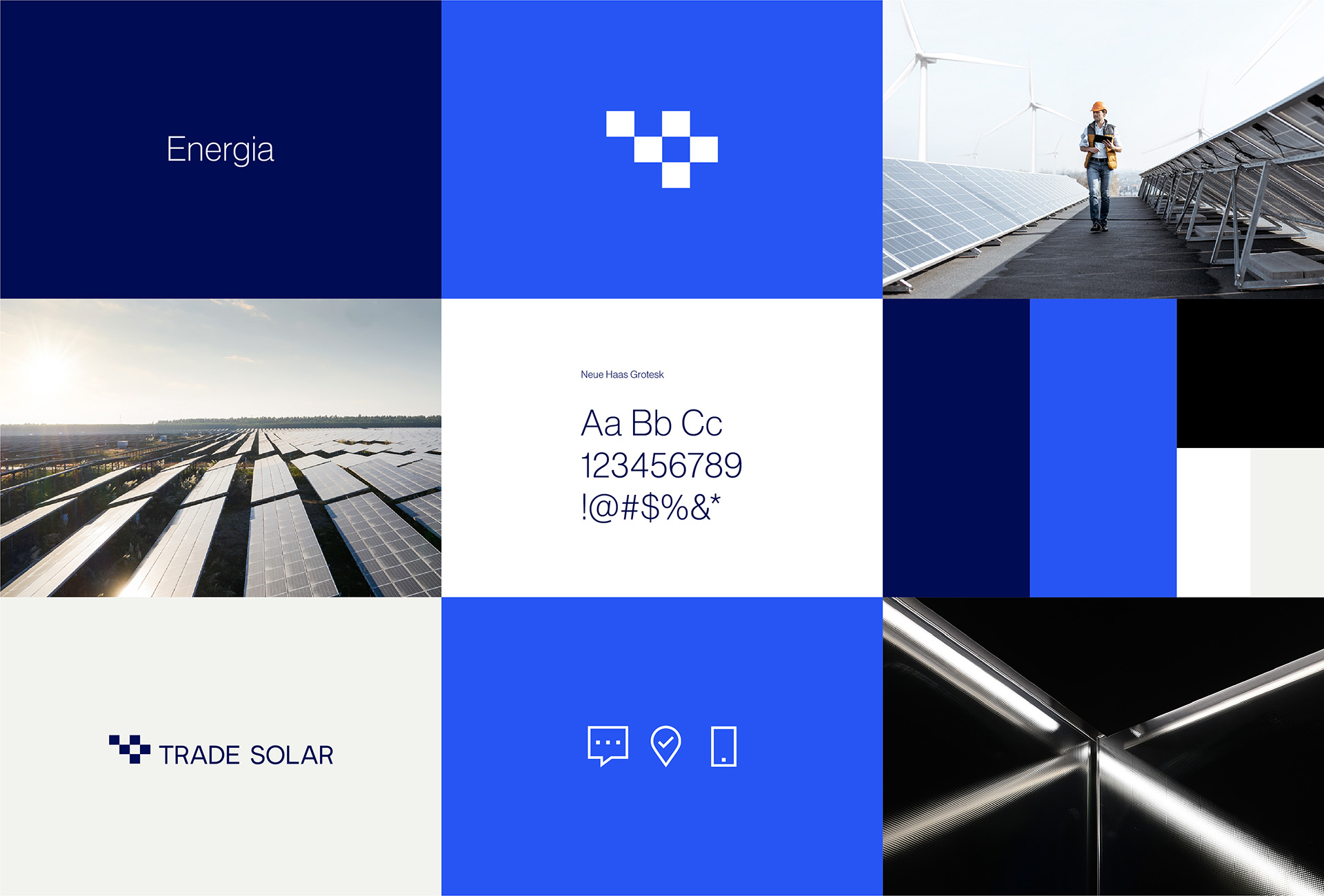 该标志设计参照了太阳能电池板网格,而为标志选择的排版是优雅的无衬线,创造了一种极简主义和实用的语言。
