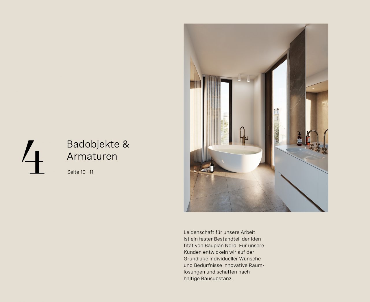 每个单独的 Bauplan Nord 项目都有自己独特的企业设计,以适应代表对象的历史和位置??沙中缘睦砟钐逑衷?Alte Rabenstrasse 3 项目中我们开发的数字的使用——首先出现在公司设计中,后来以入口时钟和电梯字样的形式在物业上展示。VI形象设计中的配色方案体现了该物业靠近阿尔斯特和汉堡市中心的位置。该项目的深度和对细节的关注在视觉元素中显而易见,例如逼真和精致的渲染。