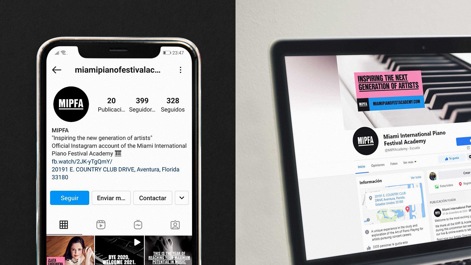 迈阿密国际钢琴节学院,MIPFA决定创建一个在线平台,提供世界上一些最好的钢琴家的课程、现场课程和其他功能。学院需要一个新的身份来重新定位为一个当代和数字化的机构,旨在激励下一代钢琴家大师。