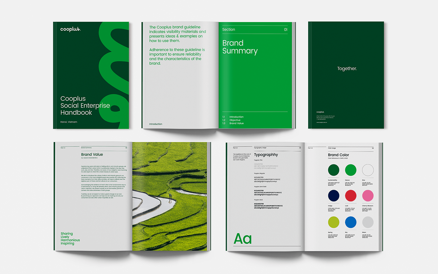 Cooplus是一家社会企业,其使命是通过可持续农业实践和传统手工艺,提高越南少数民族的农村生计。这一身份体现了爱、联系和分享的精神标志设计。
