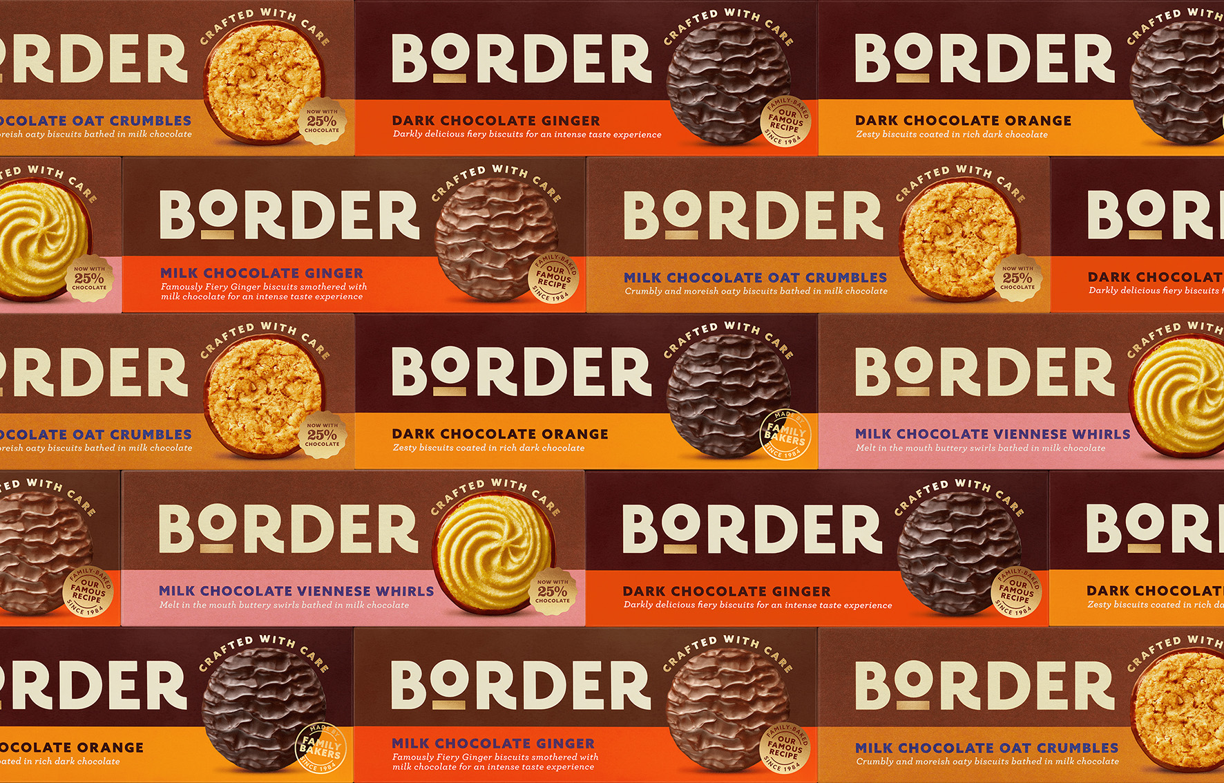 新的视觉识别标志设计 着一个重大的步骤变化,并带来即时清晰的边界-一个品牌是不可分割地联系到其产品的质量。一个更粗的标识设计包含一个带下划线的突出的O,旨在代表产品和品牌对质量的承诺。精心制作的最新包装设计信息强化了这种感觉,体现了Border作为专业饼干制造商的家族企业的传统。