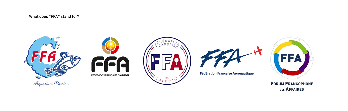 消除与其他现有FFA首字母缩略词的歧义,这些缩略词与田径运动毫无关系(钢铁、航空、保险等)