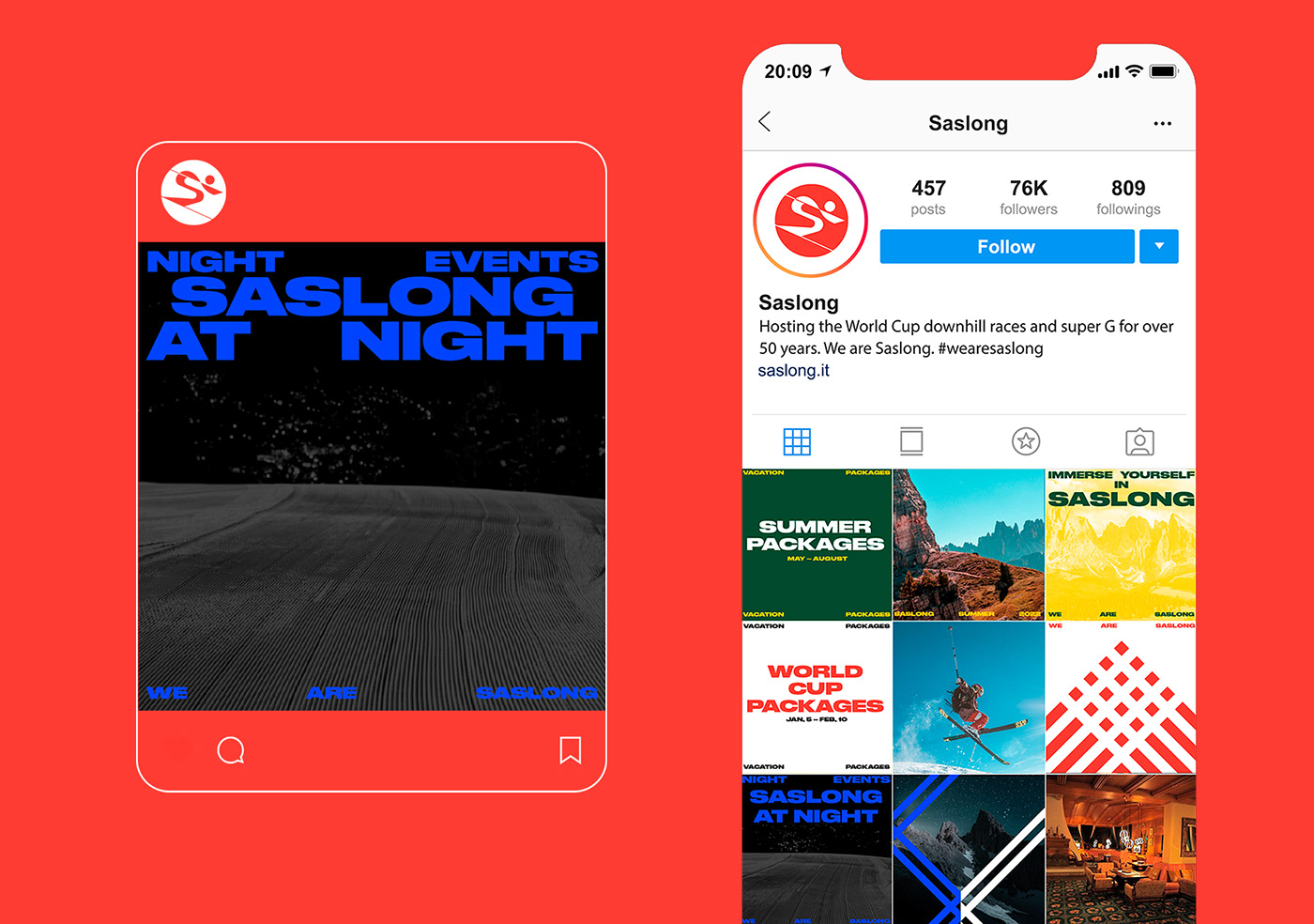 我们与Saslong合作开发了一个品牌标识和品牌活动,捕捉并表达了世界杯球场的能量以及球迷和球员的个性,向寻求刺激者、下坡追逐者、高山短跑运动员、速度恶魔和雪地赛车手致敬。