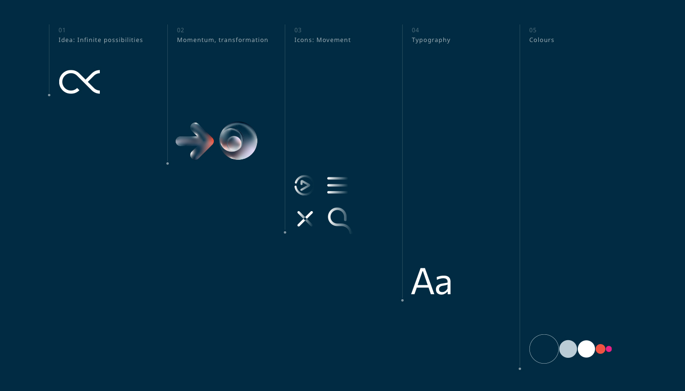 我与Propto的五个合作伙伴一起开发并提供了一个整体的品牌体验,包括体现“无限可能性”品牌理念的标志设计和战略框架。这一身份放大了企业的雄心,并将他们定位为变革驱动的创新者,通过自主、选择和非常聪明的算法来实现客户的成就。拥抱无限的可能性