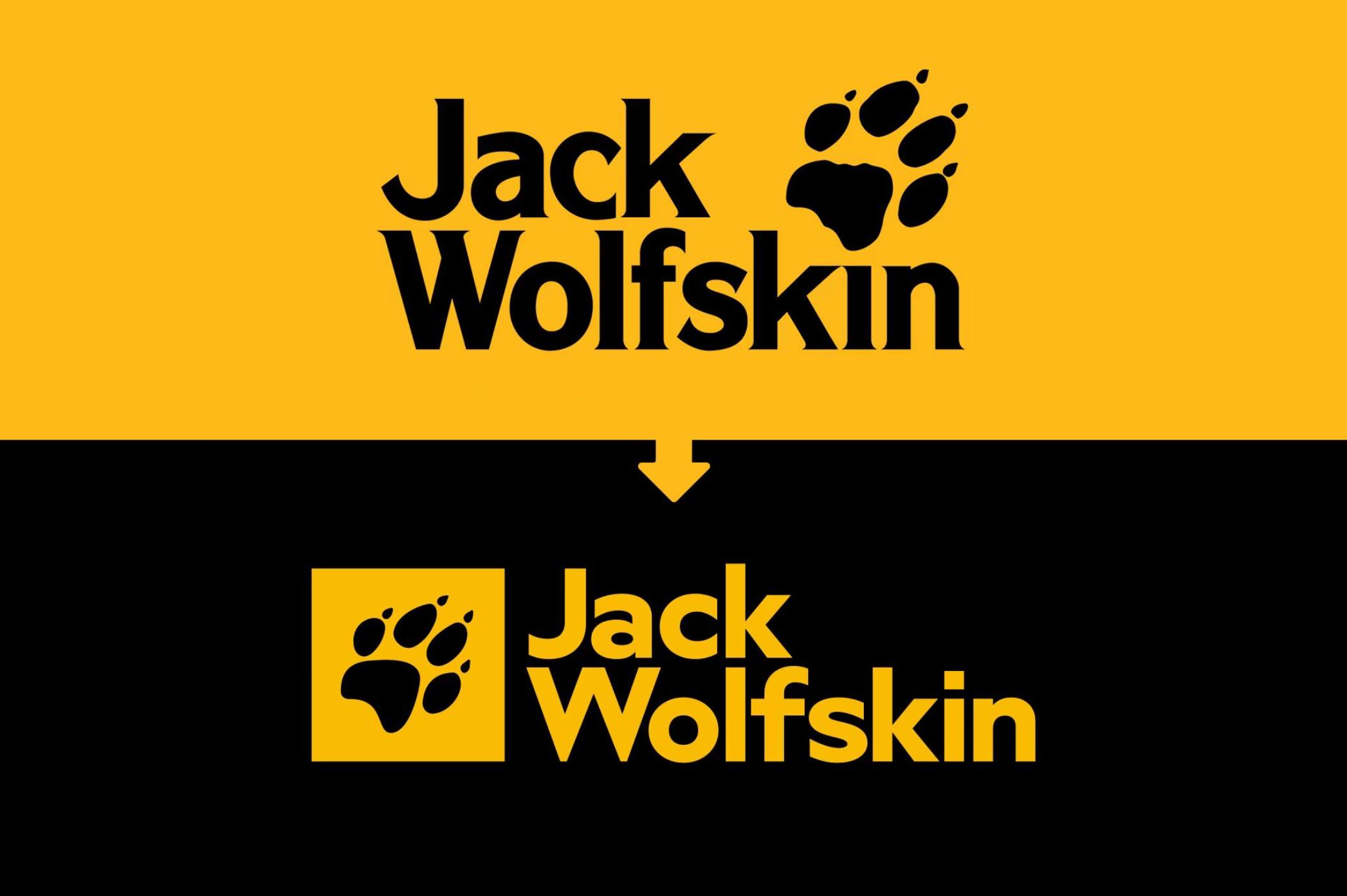 Jack Wolfskin 以前的企业设计LOGO为里色背景和明黄色文字,现在刚好反过来,图形和字休变成明带色,背是则为纯里色除了品牌LOGO设计颜色不同外,其独特的爪印从原来的右上角位置移动到字标的左侧,并增加了一个外框将狼爪框起来,变成了一个独立图形,在细节上,狼爪的掌心边缘删除了更多锚点,线条过渡平整自然。四个脚趾以及指甲部分也采用了同样的手法优化细节,使图标轮廓更干净清晰和现代。