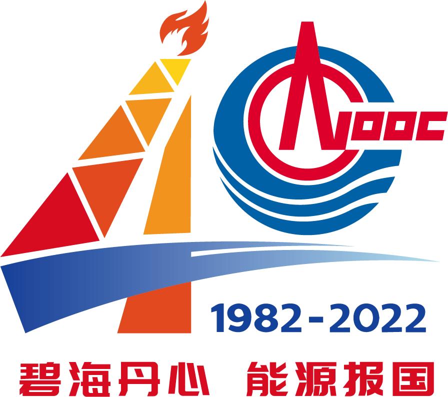 蓝色外圈和波纹象征中国海洋,英文大写字母CNOOC组成的红色图案有海上钻井平台托举一轮朝阳的意象,寓意中国海洋石油事业欣欣向荣